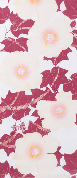 紫織庵のゆかたは、「小巾綿絽」を使用し、大正期から昭和初期に流行した柄を現代に復刻した友禅染ゆかたです。