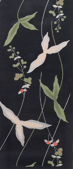 紫織庵のゆかたは、「小巾綿絽」を使用し、大正期から昭和初期に流行した柄を現代に復刻した友禅染ゆかたです。